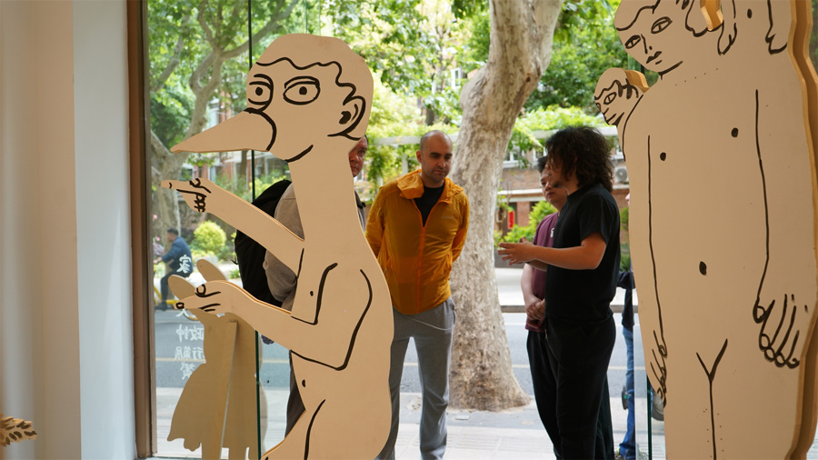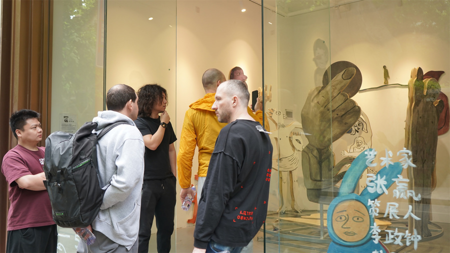 这群怀揣艺术理想的年轻人,将南昌路296号、312号等多个空间翻新,打造成让青年艺术家施展才艺的实验场,为街区注入源源不断的活力。展厅空间有限,容不下多位观众,路过的观众可以在展厅外,隔着玻璃看展。